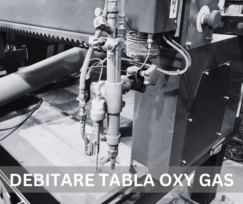 Debitarea tablei cu oxigaz (sau debitarea cu oxigaz) este o metodă tradițională de tăiere a metalelor care implică utilizarea unui jet de oxigen și gaz combustibil pentru a tăia plăci de metal. În acest proces, un flacără de oxigen și gaz combustibil este direcționată spre suprafața metalică, producând o temperatură ridicată care topște și taie materialul.